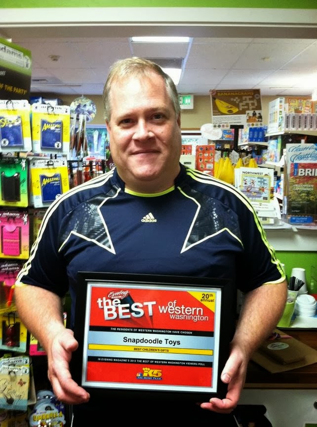 Snapdoodle Toys is one of the many local toy stores nationwide participating in Neighborhood Toy Store Day, Saturday November 9, 2013. They want you to know the fun will only continue that day – events and lattes too. Make sure to check them out if you’re in Kenmore or Redmond! If not in Washington, make sure to still support your local toy store on November 9!